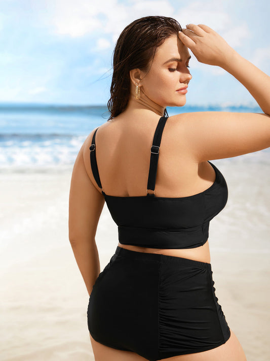 Solid Gathered Cut Out High Stretch Swim Top