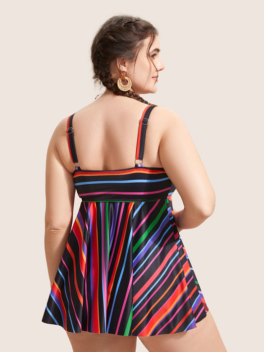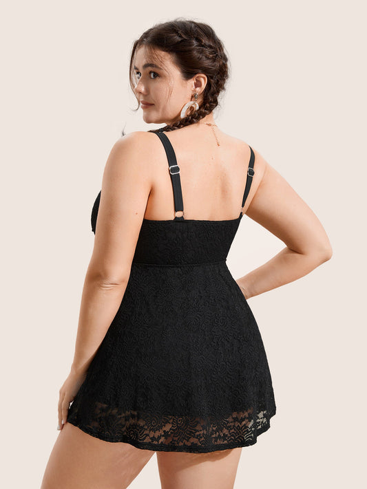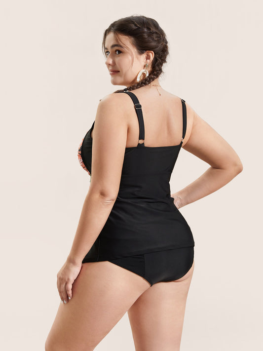 Heart Neckline Floral Patchwork Ruched Swim Top