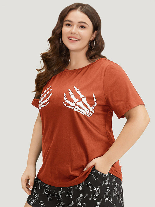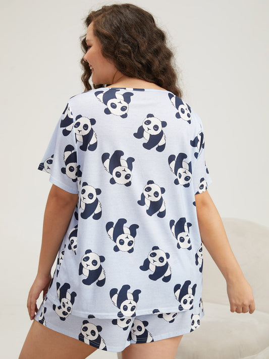 Heart Print Plaid Contrast Crew Neck Sleep Top