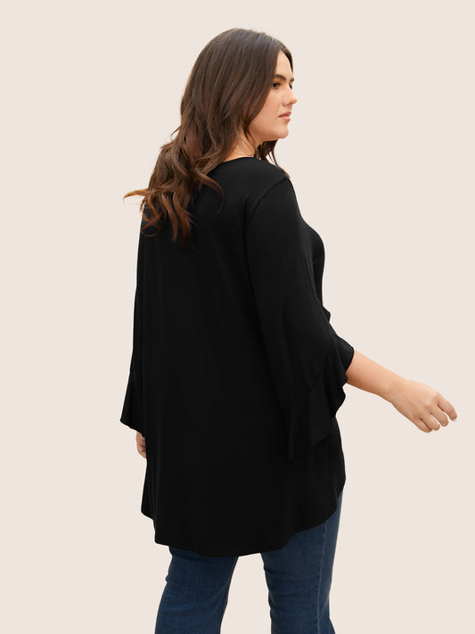 Solid Ruffle Sleeve High Low Hem T-shirt