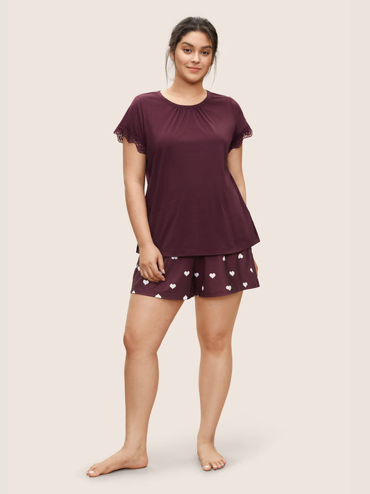 Solid Guipure Lace Gathered Sleep Top