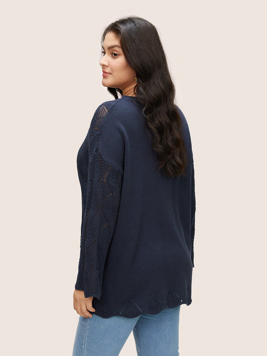 Solid Hollow Out Tassel Knot Neck Pullover