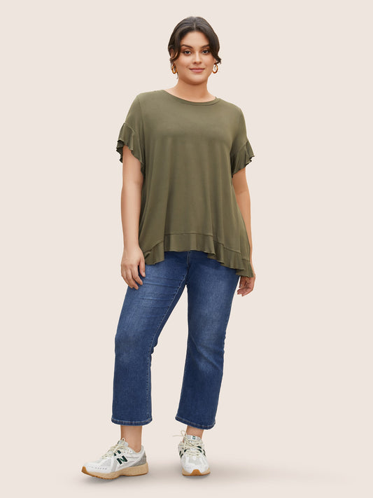 Round Neck Back Wrap Ruffles T-shirt