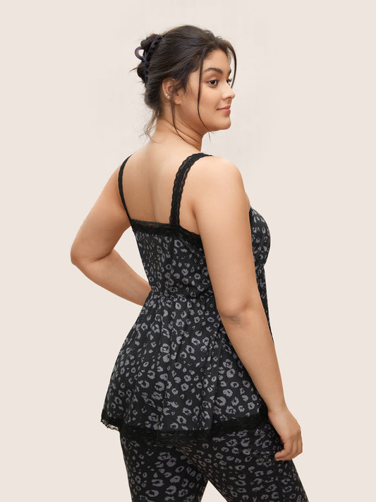 Leopard Lace Patchwork Elastic Waist Sleep Top