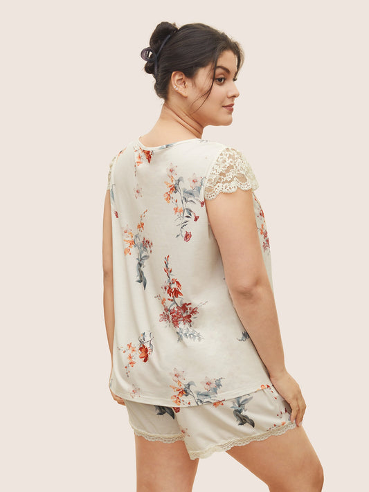 Plants Lace Patchwork Keyhole Sleep Top