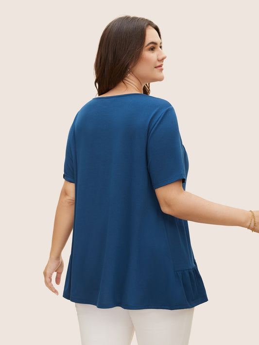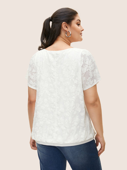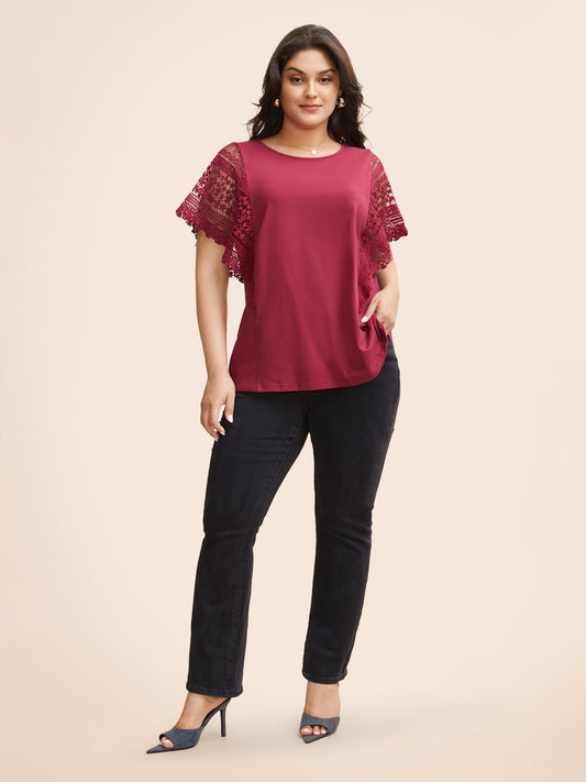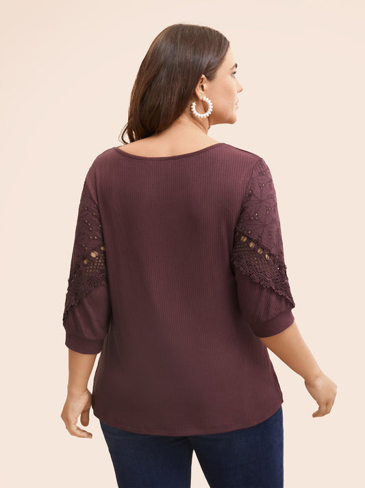Square Neck Texture Patchwork Broderie Anglaise T-shirt