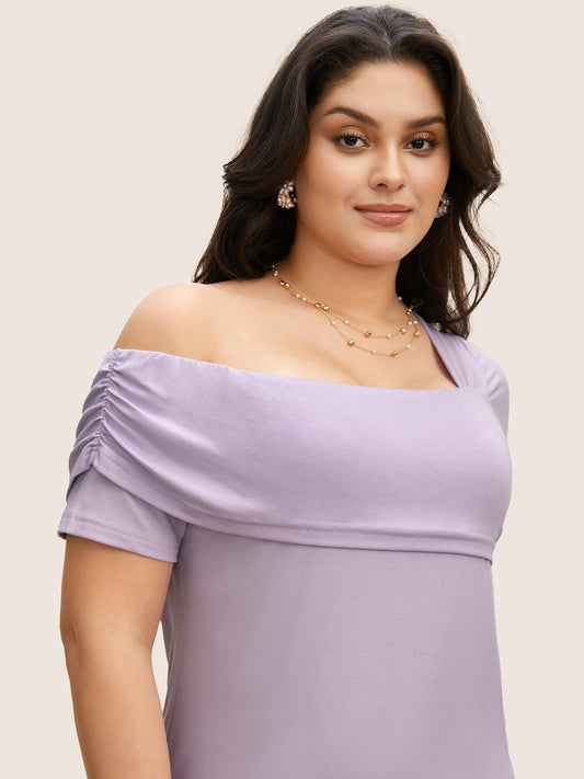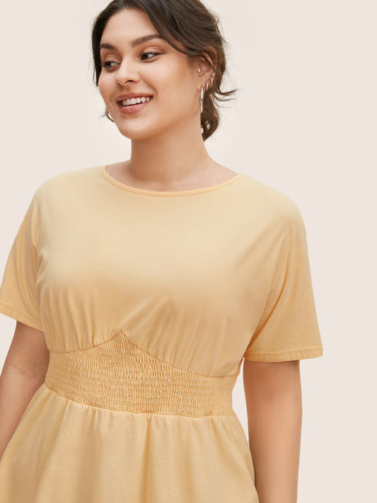 Cotton Crew Neck Shirred Batwing Sleeve T-shirt