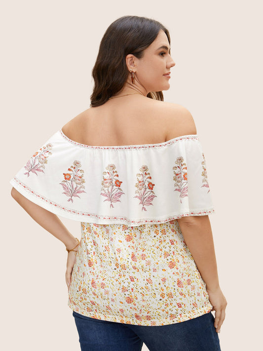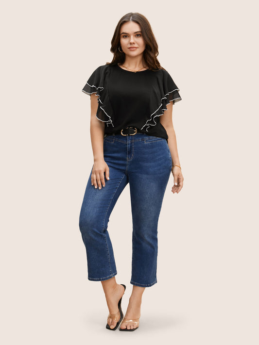 Crew Neck Contrast Trim Tiered Ruffles T-shirt