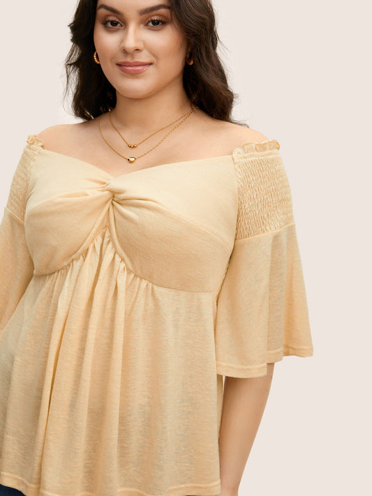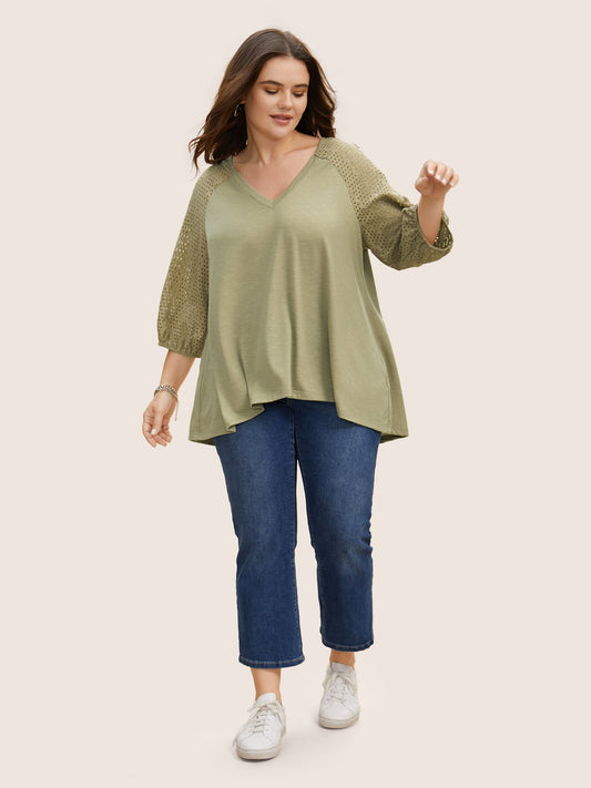 Texture Cut Out Patchwork Lantern Sleeve T-shirt