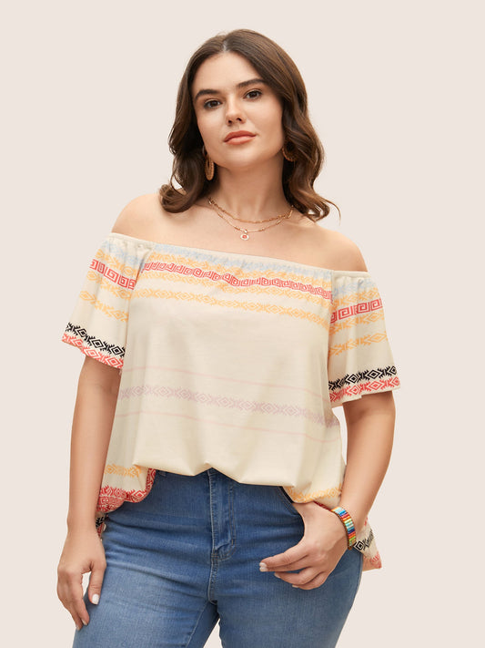 Bandana Geometric Off Shoulder Flutter Sleeve T-shirt
