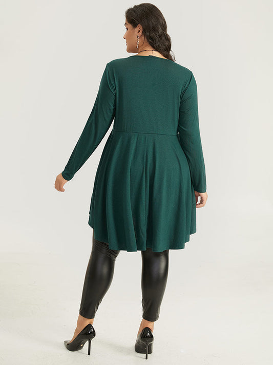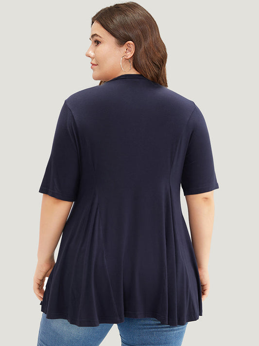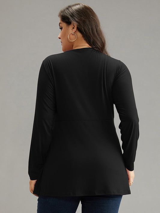 Solid Crossover V Neck Ruffle Hem T-shirt