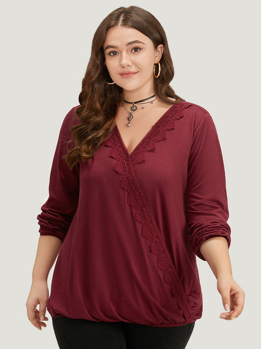 Halloween Plain Lace Panel Wrap Gathered T-shirt
