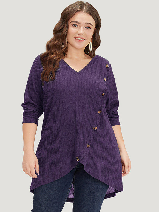 Solid Button Up Gathered Ruffle Hem T-shirt