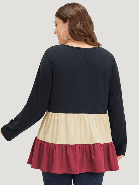 Colorblock Contrast Ruffle Layered Hem T-shirt