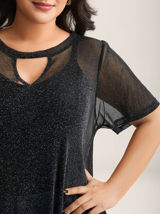 Luxe Sheer Stretchy Neck Cut-Out Solid Top