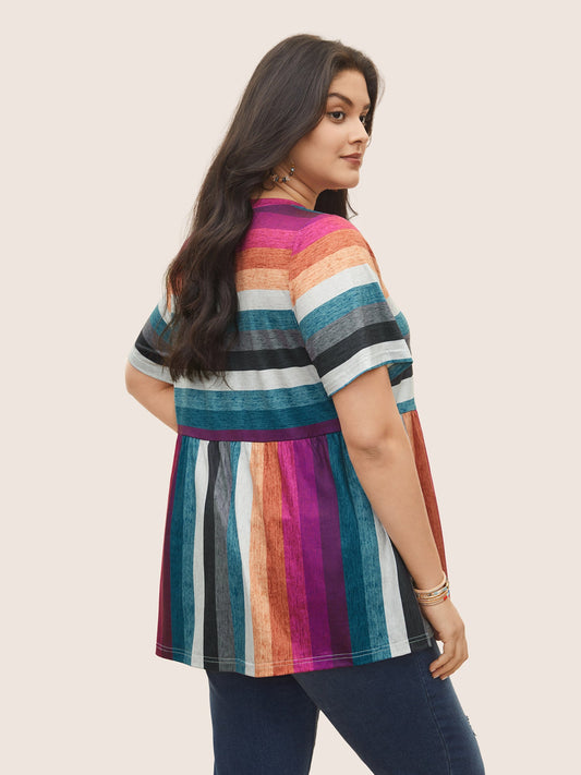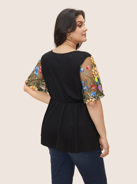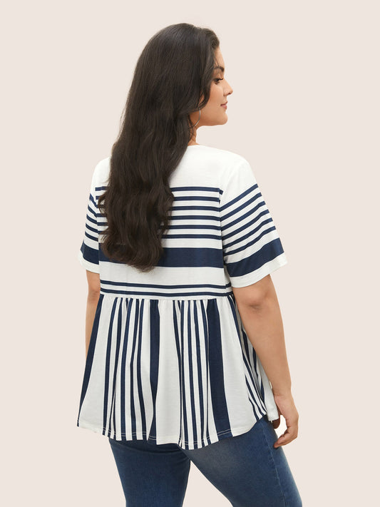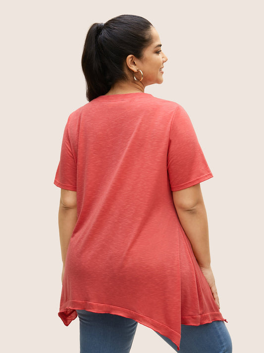 Solid Texture Patchwork Ruffle Hem T-shirt