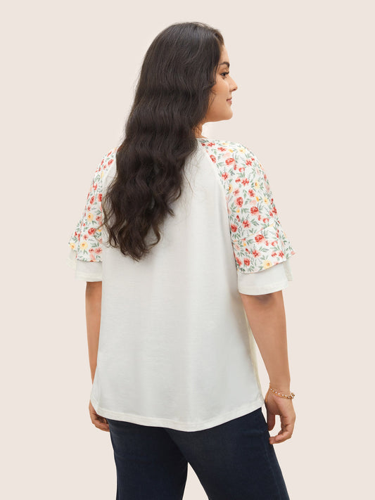 Ditsy Floral Tiered Ruffle Raglan Sleeve T-shirt