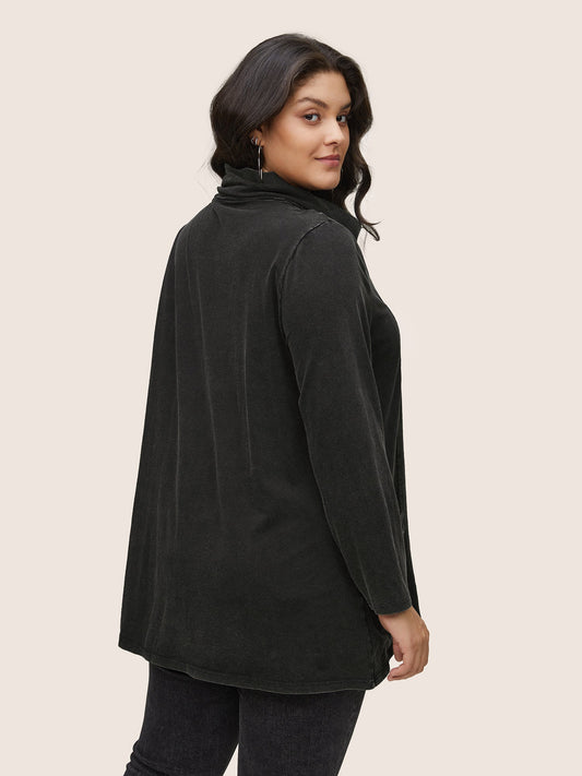 Cotton Vintage Mock Neck Wrap Hem T-shirt