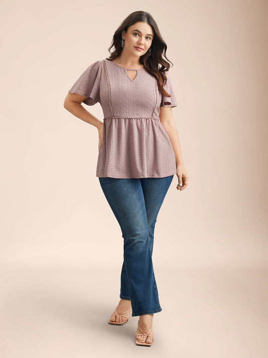 Plain Ruffle Trim V Neck Tiered Sleeve T-shirt