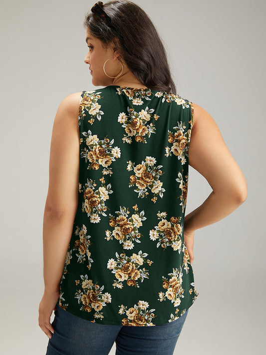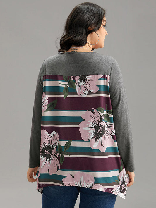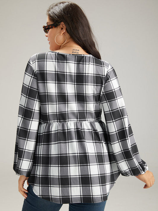 Plaid Curved Hem Lantern Sleeve T-shirt