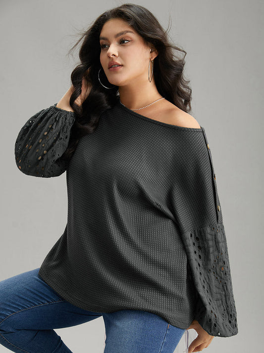 Waffle Knit Boat Neck Guipure Lace T-shirt