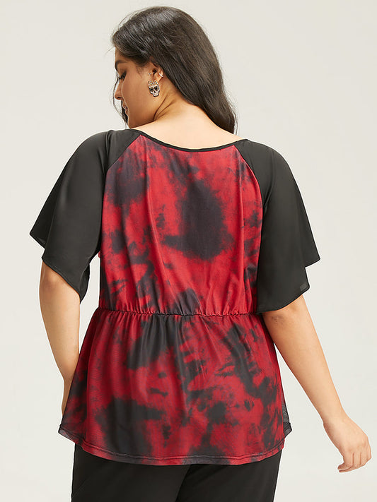 Halloween Tie Dye Lace Up Raglan Sleeve Knit Blouse