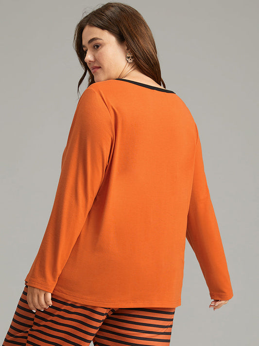 Halloween Pumpkin Print Crew Neck Sleep Top