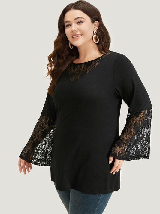 Halloween Crochet Lace Bell Sleeve Mesh T-shirt