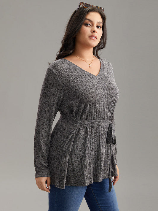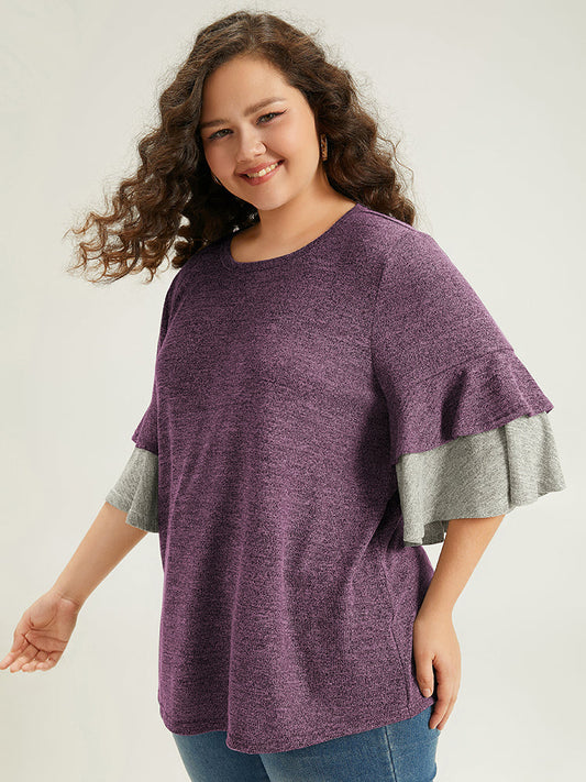 Solid Twist Front Ruched Lantern Sleeve T-shirt