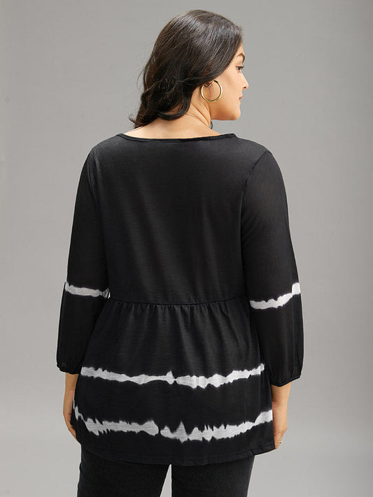 Tie Dye V Neck Elastic Waist Lantern Sleeve T-shirt