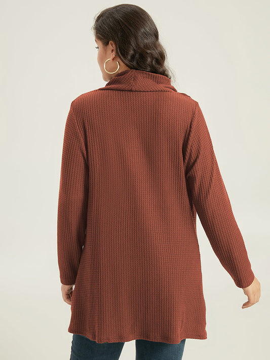 Waffle Knit Cowl Neck Wrap Hem T-shirt
