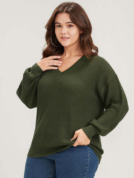 Plain Pointelle Knit V Neck Cable Knit Lace Patchwork Knit Top