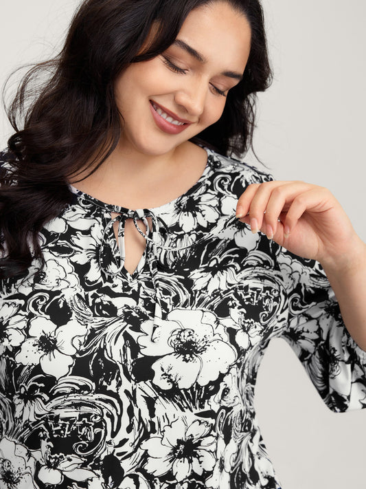 Supersoft Drawstring Neckline Ruffled Sleeve Knit Top