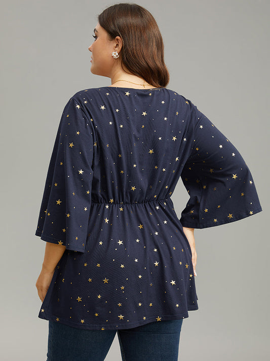 Halloween Plain Twist Front Raglan Sleeve Blouse
