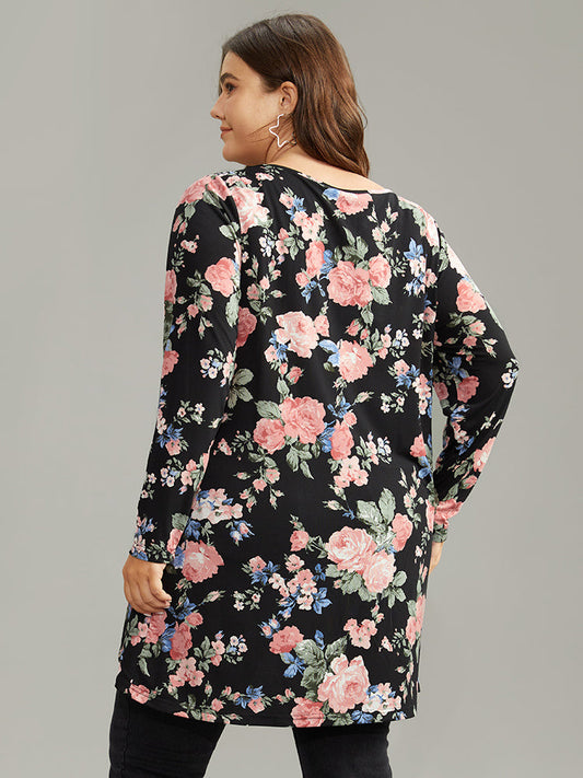 Ditsy Floral Crew Neck Plicated Detail T-shirt