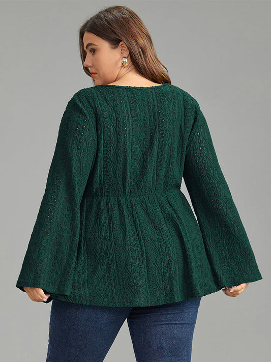 Solid Laser Cut Ruffle Sleeve T-shirt