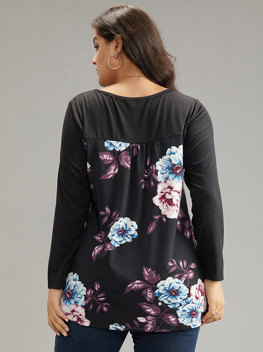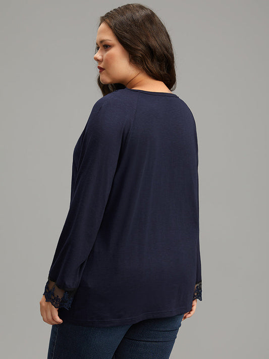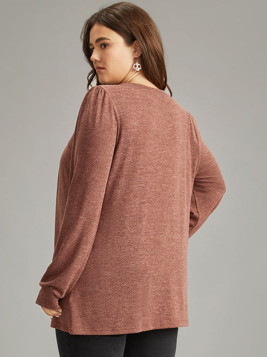 Velvet Notched Raglan Sleeve Gathered T-shirt