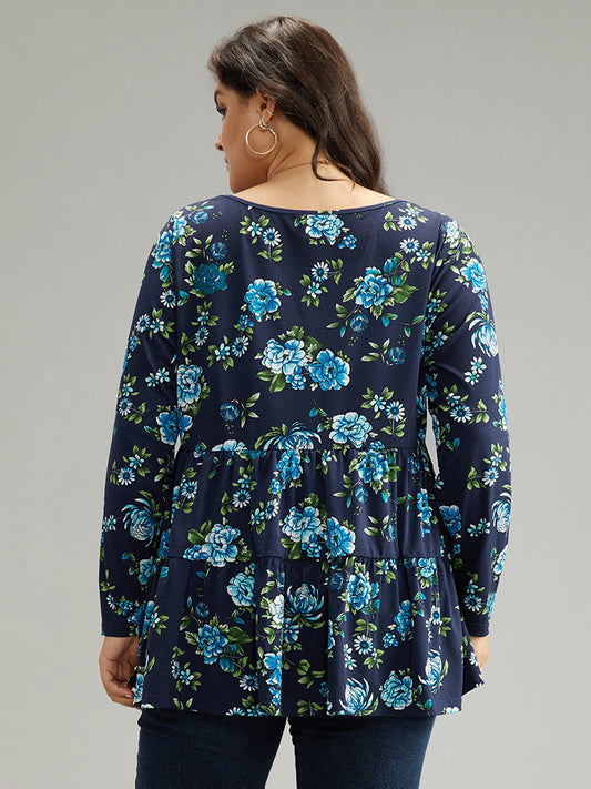 Solid Waffle Knit Notched Ruffle Sleeve T-shirt