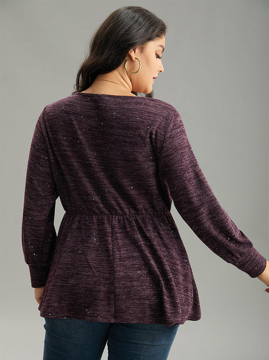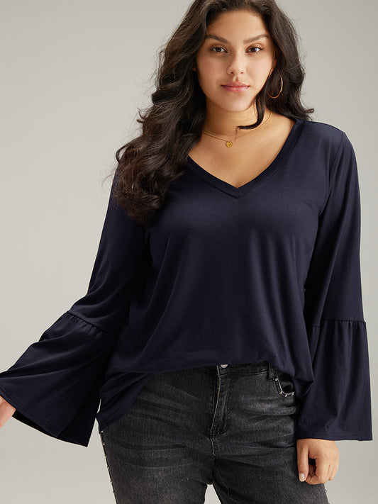 Solid Bell Sleeve V Neck Gathered T-shirt