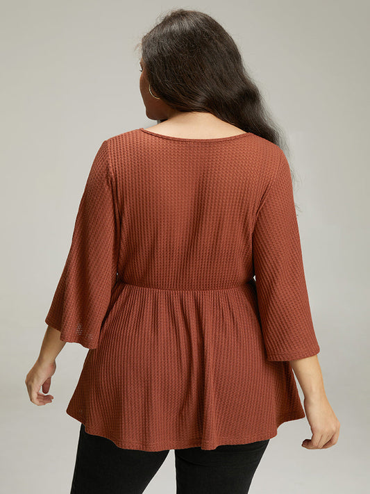Solid Waffle Knit Wrap Flutter Sleeve T-shirt