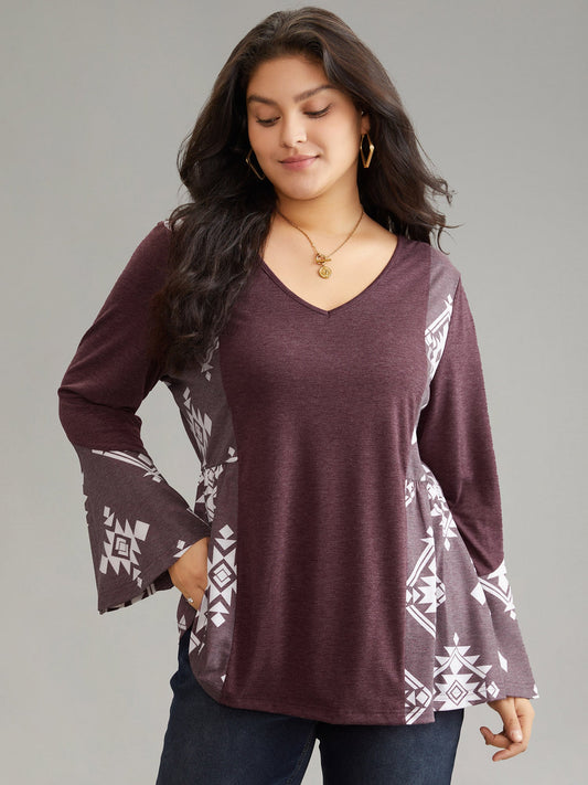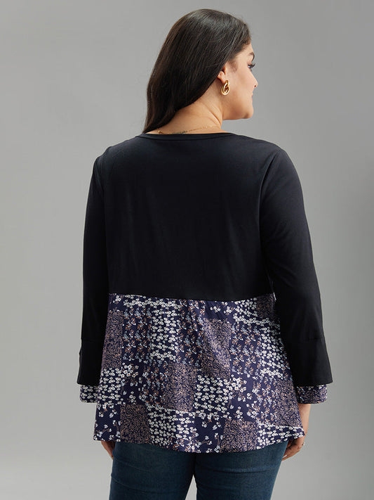 Ditsy Floral Patchwork Flutter Sleeve T-shirt