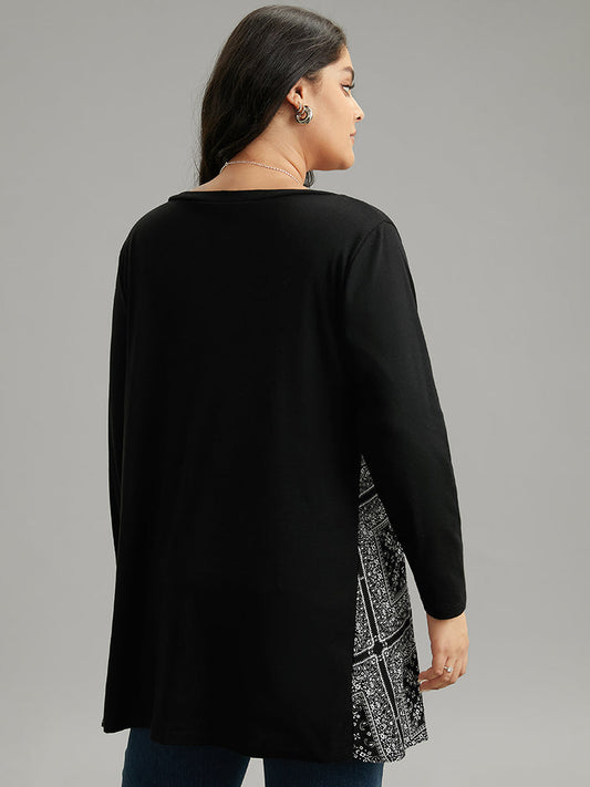 Velvet Floral Patchwork Raglan Sleeve T-shirt