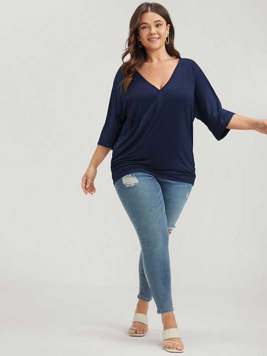 Solid Gathered Button Dolman Sleeve Wrap Modal T-shirt