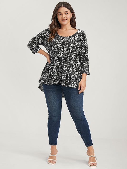 Floral Button Flutter Asymmetrical Hem T-shirt