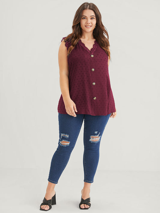 Polka Dot Button Eyelet Lace Trim Tank Top