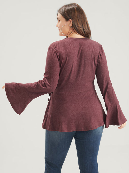 Solid Bell Sleeve Ties Side Wrap Long Tee