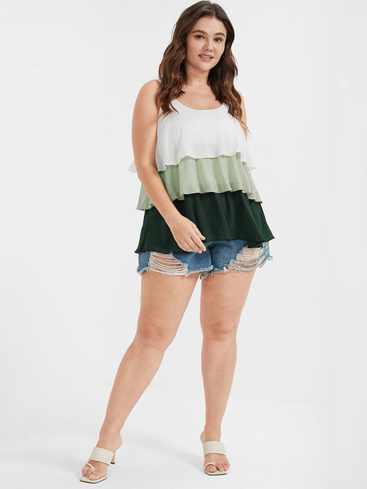 Colorblock Spaghetti Strap Ruffles Tiered Contrast Tank Top