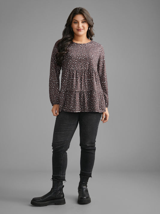 Leopard Print Ruffle Layered Hem Jersey Top