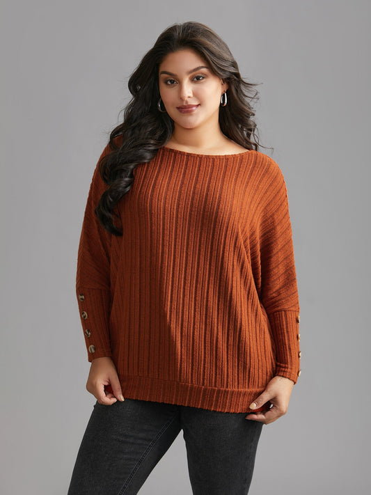 Textured Sleeves Buttons Round Neck Knit Top