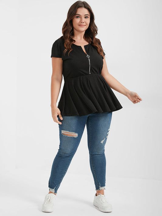 Plain Cap Sleeve Zipper Round Neck T-shirt